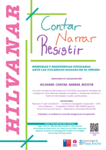 La jornada de inauguración comenzará con un seminario de apertura que contará con la participación del Rector de la Universidad de Playa Ancha, Carlos González Morales. Posteriormente, se desarrollará un espacio de diálogo con la investigadora responsable y curadora del proyecto, Macarena Trujillo Cristoffanini, junto a la investigadora Karina Bidaseca (CONICET, Universidad de Buenos Aires y Universidad Nacional de San Martín) y la académica Paola Contreras Hernández (Universidad de Viña del Mar), quien moderará la conversación.